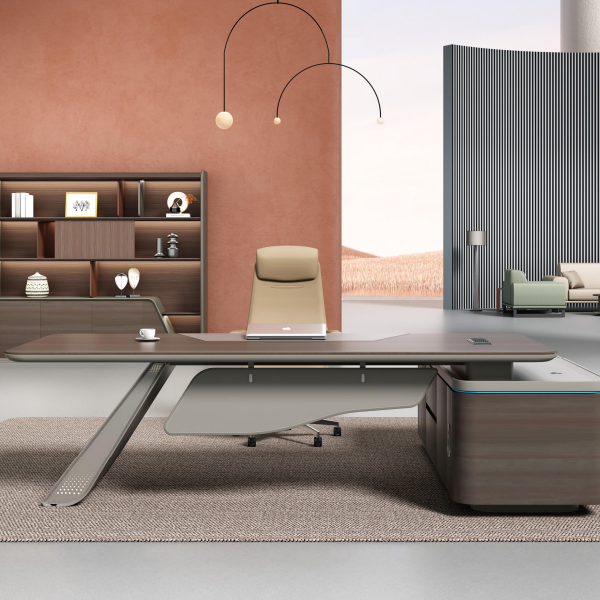 設(shè)計(jì)風(fēng)格:經(jīng)理班臺(tái)通常采用現(xiàn)代簡(jiǎn)約的設(shè)計(jì)風(fēng)格,線條流暢、造型簡(jiǎn)潔。同時(shí),也融入了一些時(shí)尚元素,如金屬邊框、玻璃材質(zhì)等,展現(xiàn)出專業(yè)與時(shí)尚的氣質(zhì)。